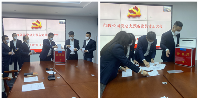 12月6日,市政公司黨總支第一黨支部、第二黨支部先后召開預(yù)備黨員轉(zhuǎn)正會議,討論曹凱、孔慶巖2名同志的轉(zhuǎn)正事宜。各項目部黨員視頻參會。